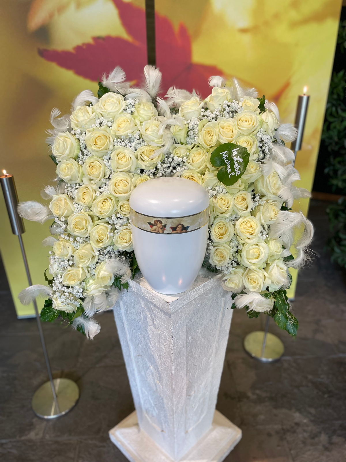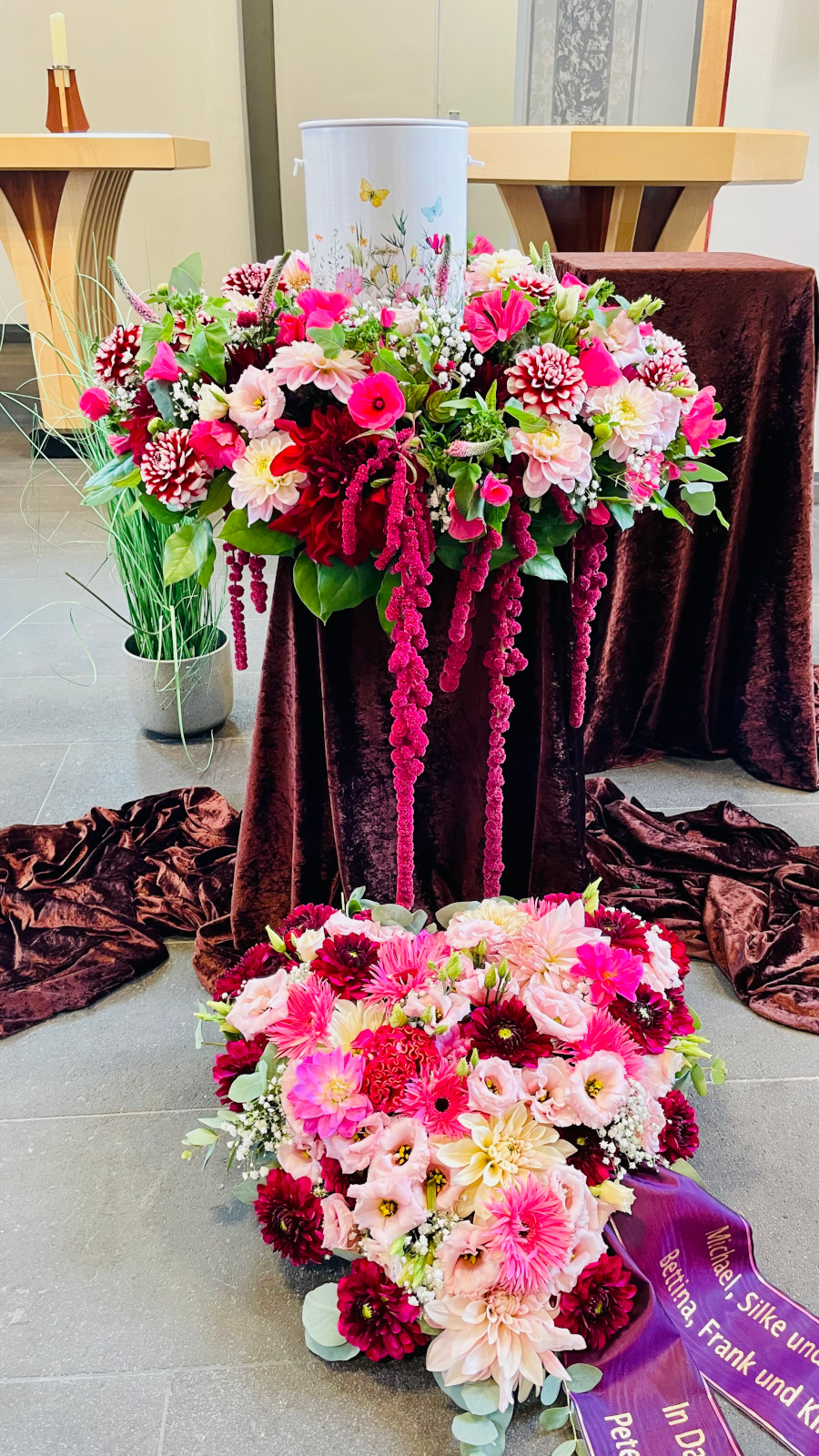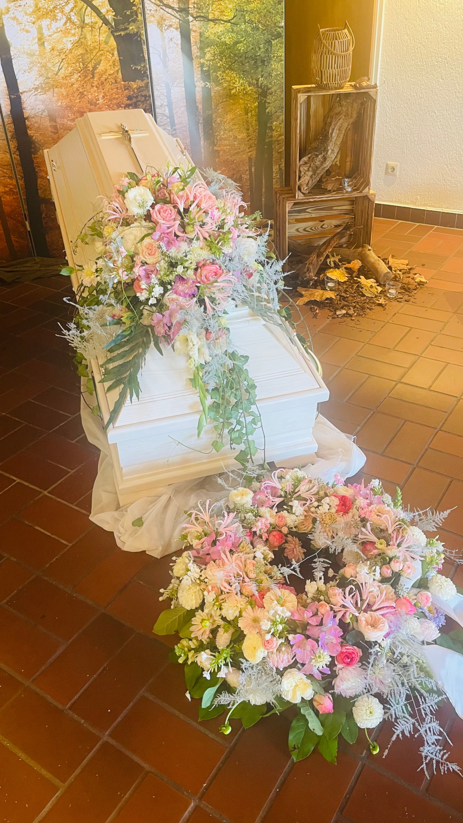 Komplette Gestaltung aus einer HandVon Kränzen und Blumenschmuck bis zur Dekoration der Abschiedsräume oder Friedhofskapellen.
